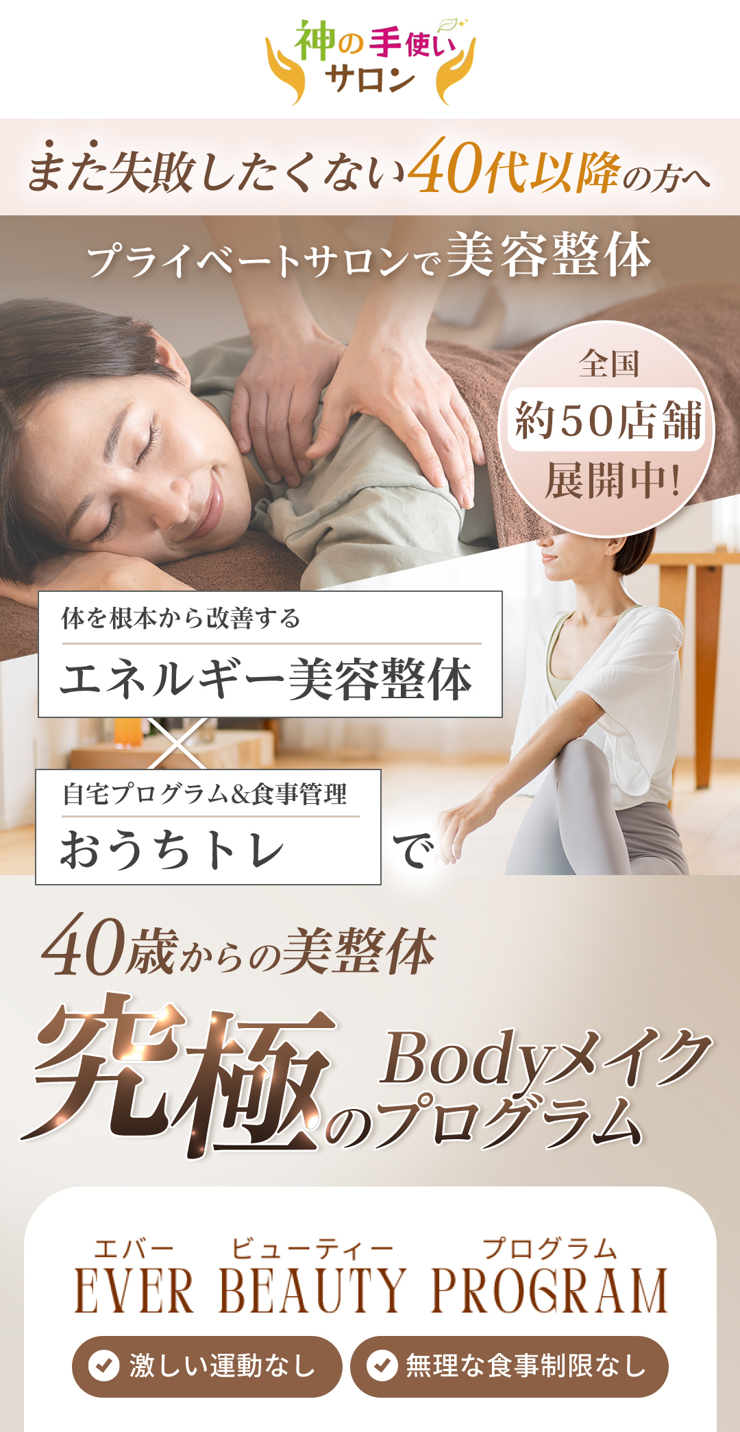 ぜひお任せください! これまでダイエットに失敗された方にこそ、EverBeautyProgramを体験していただきたいのです。失敗の原因は、表面的なアプローチや継続困難な方法にあります。私たちは体質を根本から改善し、お客様と二人三脚で取り組みますので、理想の自分を手に入れる新しいスタートを一緒に切りましょう!