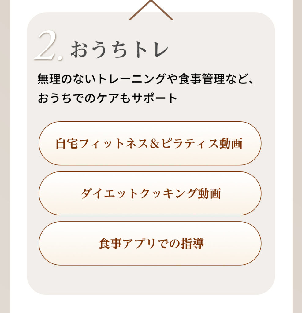 大丈夫です。 極端な食事制限や我慢を強いることはありません。食事管理アプリを使って、「何を食べてはいけないか」ではなく「何を食べると良いか」を楽しく学んでいただきます。24種類のダイエットクッキング動画で美味しく健康的なお食事を楽しみながら、無理なく体質改善していきます。