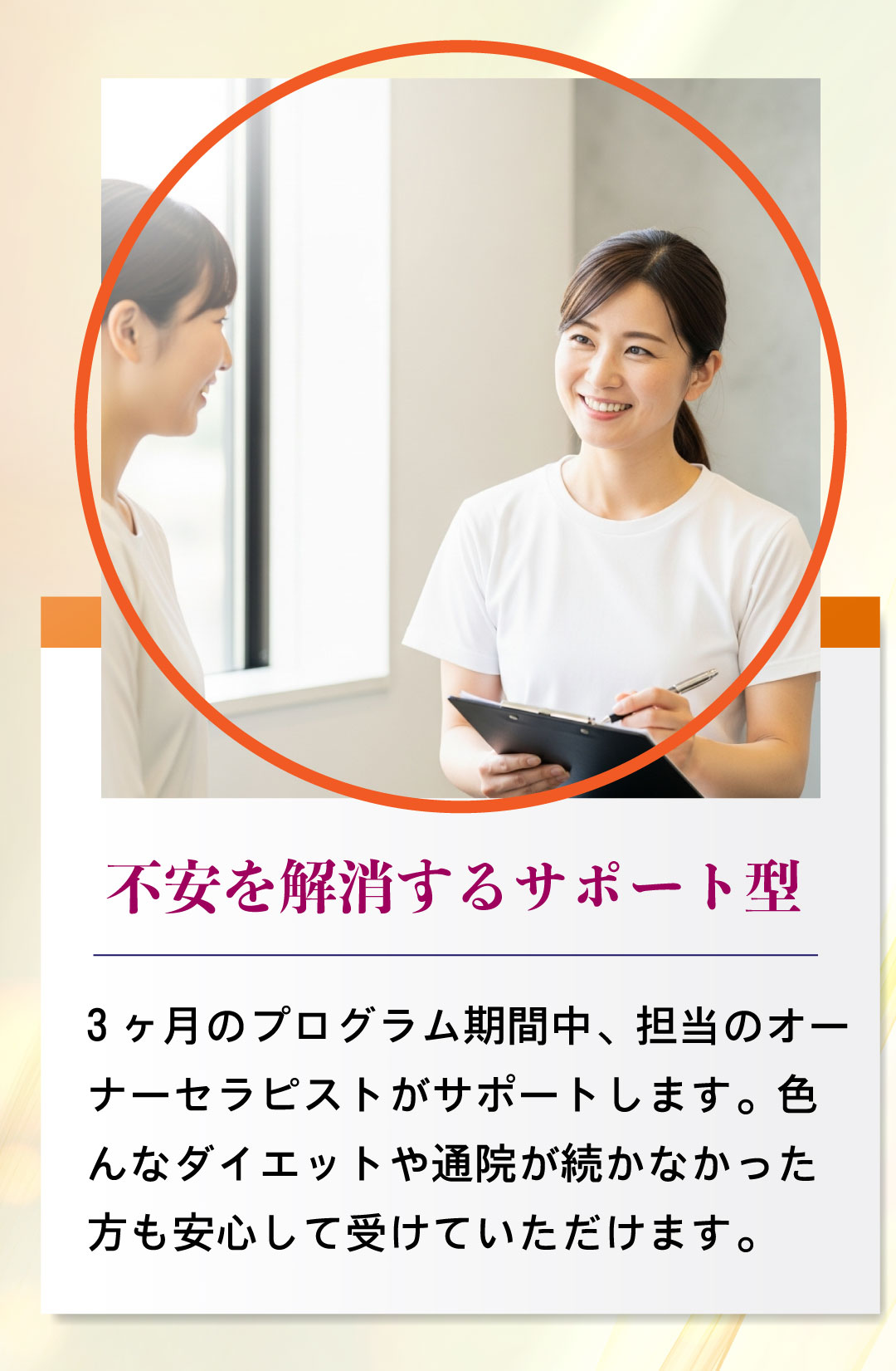 ぜひお任せください! これまでダイエットに失敗された方にこそ、EverBeautyProgramを体験していただきたいのです。失敗の原因は、表面的なアプローチや継続困難な方法にあります。私たちは体質を根本から改善し、お客様と二人三脚で取り組みますので、理想の自分を手に入れる新しいスタートを一緒に切りましょう!